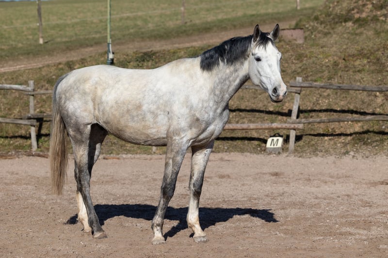 Bentador was taken over by us in January 2025 from the Oldenburg breeders Antje and Konstantin Stahl. He had previously been in dressage training for several months. He is a sweet, athletic boy with an incredibly quick understanding and beautiful movements. With us, Benny loads into the trailer without any issues, picks up his hooves willingly, is familiar with hoof boots, and can stand tied for longer periods. However, we are always cautious with terms like "blacksmith and loading friendly," as this often depends on the individual horse's relationship with the person handling them. In the field, Benny is brave, motivated, and curious. In the riding arena, he offers an incredible amount on the ground – jumping, flying changes, lateral movements, and transitions are a breeze for him when the person at the other end of the rope is friendly and fair and can manage their own energy well. Even under saddle, he shows his great potential in all three gaits – when the relationship with his human is right and they can provide him with security and relaxation. Bentador is the perfect horse for an ambitious rider with good horsemanship skills who is eager to develop further with him both on the ground and while riding. He closely bonds with his person, valuing relationship, reliability, and trust, but he also appreciates play, creativity, and humor with his human. In our herd, he is very self-confident and enjoys being able to socialize after years as a stallion (until October 2024). Bentador will be placed in the hands of someone experienced in horsemanship and will only be sold for open stable and herd living. If you are interested in Benny, we hope you will take the time to get to know him calmly with us. Included in the price is a voucher for participation in two camps with us (dates can be found on our website www.birkenhof-heil.de).