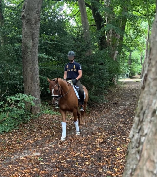 Fidelio Solero – 6-year-old gelding by Franziskus x De Niro Solero is an absolute dream horse, impressing not only with his pedigree and talent but especially with his wonderful temperament. Why Solero is a true find: * Charismatic personality: well-behaved, people-oriented, affectionate – a horse that loves to please. * Excellent rideability: sensitive to aids, responds well to voice commands, comfortable to sit. * Calm & steady: whether in the arena, on the trail, or in everyday life. * Training with potential: confidently at good novice level, some advanced L-level lessons mastered. * Good size: approximately 165 cm (16.1 hh), ideal for larger riders (up to 183 cm). No vices. No fussiness. Simply a horse that makes riding enjoyable. He always wants to please and does everything asked of him. He learns incredibly quickly and is a real pleasure to ride every time. Overview of qualities: * Three good basic gaits * Farrier & loading absolutely trouble-free * Enjoys working over poles * Friendly to humans, dogs, and other horses Whether you're a leisure rider with high standards or an ambitious beginner in competitions – Solero is ready to become your new heart horse. 📍 Location: Aachen Viewing and trial riding available anytime by arrangement – we charge €30, which will be credited towards the purchase price! If you are looking for a reliable, well-trained, and lovable horse, you should definitely get to know Solero! Videos can be sent upon request. We look forward to hearing from you!
