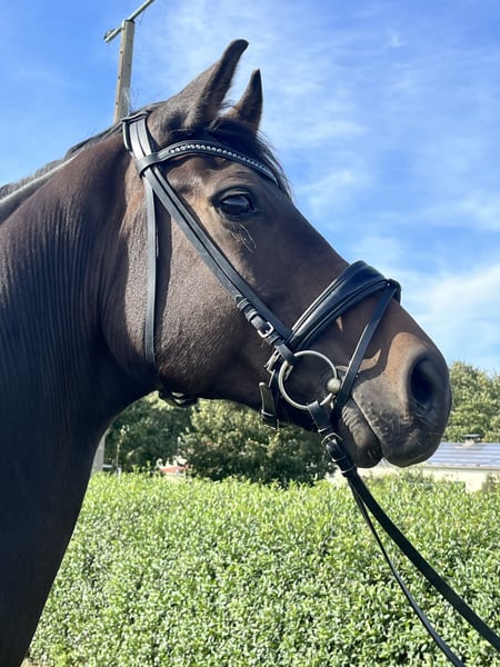 This 7-year-old gelding, approximately 175 cm tall, by For Dance x Fürst Romancier has great potential for dressage. However, he has only been lightly ridden until recently and requires an experienced rider for further training. He is well-behaved in handling and under saddle, but can be somewhat distracted by his environment at times, making him unsuitable for beginners. There is a cosmetic flaw in the croup area, but it does not affect his movement. The gelding is offered on behalf of the breeder. For more information, please feel free to call 0177 6854203.