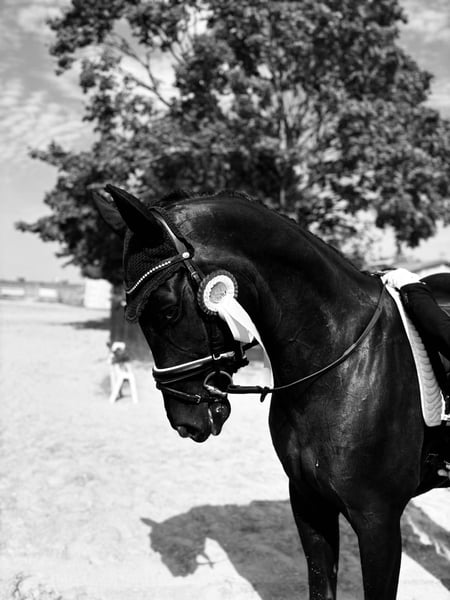 For sale is a striking 2019-born gelding with an excellent pedigree by Foundation out of Uno Don Diego, impressing both sportingly and in character. He has already achieved a 2nd place in the Dressage Young Horse class and is currently confidently competing at L-level, showing great potential for progressing toward M and S classes. 👉 His sporting career is still entirely ahead of him. The gelding is currently in training with a rider who holds a Gold Riding Badge and has been trained from the beginning by a rider with this badge—an education that clearly reflects in his looseness and correct work. Due to my pregnancy, he has not been consistently promoted lately, which has resulted in less wear and tear and gives him a particularly fresh, unspoiled outlook. 🌟 His highlights: - Three very good, elastic basic gaits - Willing to learn and performance-oriented - Absolutely sweet, honest, and uncomplicated in daily handling - Always provides his rider with a secure and positive riding experience and is very cuddly - An ideal horse for ambitious amateurs as well as for further sporting development This horse combines quality, character, and future potential—a true rough diamond with a solid foundation and plenty of room for growth.