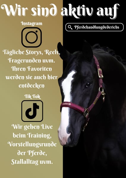 Jack ist ein 2017 geborener Wallach ca. 172cm v. Jack Jones, Johnson, De Niro, Donnerhall x Bretone, Brentano II, Antibes *Jack* wunderschöner Rappwallach mit super Charakter. Jack bringt 3 gute GGA mit und geht leicht durchs Genick. Er ist ein richtiger Hingucker. Im Gelände hat er sich auch nur bestens gezeigt. Er liebt es umsorgt, gekuschelt zu werden, ist ein ganz menschenbezogenes und ehrliches Pferd. Jack möchte immer gefallen. Er kann sogar ein paar Kunststückchen. Ein Traumpferd. !!! SCHAUEN SIE SICH UNBEDINGT SEIN VIDEO AN !!! Eine große aktuelle AKU bringt er auch mit. Er ist vom Ausbildungstand eher wie ein junges Pferd. Aufgrund das er noch etwas Sicherheit und Ausbildung vom seinem Reiter benötigt und dadurch aktuell nicht für ständig wechselnde Reiter geeignet ist, im Preis sehr angepasst. Gerne kann er vorgeritten werden, ein probereiten ist aufgrund dessen nicht möglich. Ein aktuelles Video findet ihr hier in der Anzeige und unter folgendem Link: https://www.youtube.com/watch?v=askjOJZeU9o Pferdehandlung Dederichs – Ihr Partner für den Pferdekauf Kontakt & Erreichbarkeit: Anfragen bitte ausschließlich telefonisch unter 0173/9792139 Montag – Freitag: 09:00 – 18:00 Uhr Samstag: 09:00 – 15:00 Uhr Sonntag: Ruhetag Folgen Sie uns auf Social Media! Erleben Sie unseren Alltag mit den Verkaufspferden auf Instagram, TikTok & Facebook unter Pferdehandlung Dederichs Rabatt: Bei sofortiger Mitnahme Ihres neuen Traumpferdes erhalten Sie zwischen 5 %– 10 % Rabatt Probereiten & Vorführen: • Probereiten: 30 € pro Pferd (max. 2 Reiter), Betrag wird beim Kauf angerechnet • Feiertage: Proberitt 50 € • Vorführung durch unsere Bereiter: 25 € pro Pferd (Vorreiten, Bodenarbeit etc.) Ankaufsuntersuchung & Transport: • Viele unserer Pferde besitzen bereits eine AKU • Sie können selbstverständlich Ihren eigenen Tierarzt mitbringen • Gerne organisieren wir eine Untersuchung • Wir unterstützen Sie auch gerne beim Transport ins neue Zuhause Weitere Verkaufspferde: In unserem Stall stehen weitere Verkaufspferde, die noch nicht online sind. Falls Ihr Traumpferd noch nicht dabei ist, zögern Sie nicht, uns zu kontaktieren. Wichtige Hinweise: • Stockmaß-Angaben sind geschätzt und nicht exakt nachgemessen • Alle Beschreibungen sind subjektive Einschätzungen des Verkäufers und keine zugesicherten Eigenschaften Weitere Informationen finden Sie unter: www.Pferdehandlung-Dederichs.de