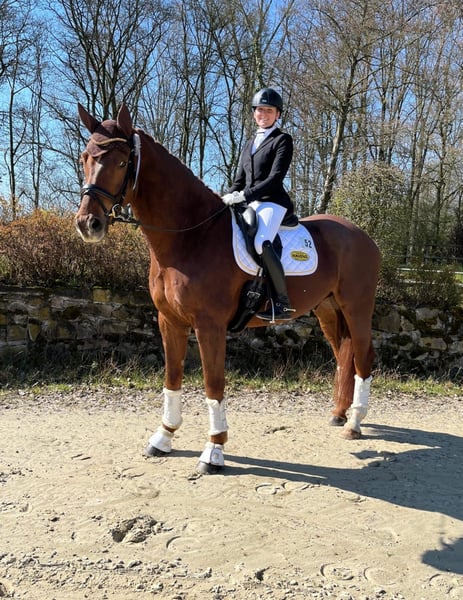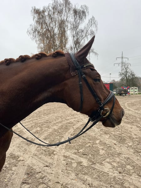 Dieser Wallach ist etwas ganz Besonderes mit einem Herzen aus Gold! Dia Bonito ist nicht nur durch seine Größe ein „Fels in der Brandung“. Er lässt sich durch nichts erschüttern, egal ob im täglichen Training, beim Ausritt oder auf dem Turnier. Bonito gibt seinem Reiter immer ein sicheres Gefühl und möchte seinem Reiter einfach immer gefallen. Neben seinem hervorragenden Charakter und seiner Leichtrittigkeit ist er auch noch ein top Lehrmeister für die Klasse L. Hierbei beherrscht er alle Lektionen sehr sicher, egal ob auf Trense oder Kandarre. Dies konnte er auch auf Turnieren unter Beweis stellen und ist somit mehrfach hoch in L Dressuren platziert. Die Lektionen der Klasse M wurden spielerisch begonnen und auch hier zeigt er sich sehr lernwillig! Auch abseits des Turniersports macht er immer einen tollen Job- er geht gerne ins Gelände, macht auch mal einen Gymnastiksprung und ist auch im Umgang absolut unkompliziert! Bonito besitzt einen guten TÜV, war nie krank und besitzt keine gesundheitlichen Einschränkungen oder Besonderheiten. Wer also das Rundum-sorglos-Paket sucht, ist bei Bonito genau richtig!