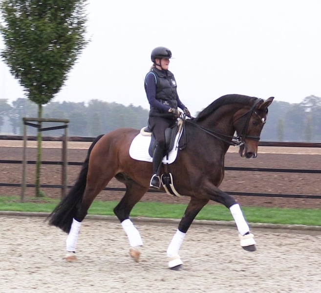 Idefix is an 8-year-old gelding. He has been gently trained. He has not been presented at competitions often, but has already won a S-level dressage and placed 2nd twice. He is very well-mannered and is simply a joy to handle! He is now ready for bigger challenges. If you are interested, please feel free to get in touch.