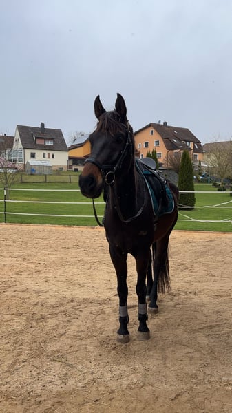 Zum Verkauf steht mein 9-jähriger Oldenburger Wallach Finley – ein bildschöner, dunkelbrauner Wallach mit einem Stockmaß von ca. 1,70 m und beeindruckender Ausstrahlung. Steckbrief: • Rasse: Oldenburger (mit Equidenpass) • Geschlecht: Wallach • Alter: 9 Jahre • Farbe: Dunkelbraun • Stockmaß: ca. 1,70 m • Ausbildung: Freizeit geritten, kennt Bodenarbeit und Longieren Finley wurde bisher als Freizeitpferd geritten und zeigt sich im Umgang freundlich und menschenbezogen. Im Gelände ist er in Begleitung brav und gelassen. Dennoch ist er kein Anfängerpferd, da er eine klare, konsequente Führung und regelmäßiges Training braucht. Er ist intelligent, lernwillig und zeigt bei gezielter Förderung viel Potenzial für weitere Aufgaben. Das solltest du mitbringen: • Erfahrung im Umgang mit sensiblen Pferden • Geduld, Zeit und Freude an kontinuierlicher Arbeit • Einen Platz mit artgerechter Haltung und Trainingsmöglichkeiten Hinweis: Aktuell ist kein Probereiten möglich, da Finley zurzeit nicht geritten wird. Standort: Hollfeld Preis: VB Bei ernsthaftem Interesse freue ich mich über eine Nachricht mit kurzer Vorstellung.