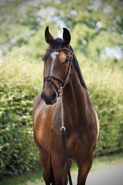 A true diamond in the rough looking for his person! Our "Nino" impresses with his charming personality, his compact build, and a top-class gallop in the jumping phase. He is absolutely well-behaved and human-oriented in handling – a horse that everyone simply likes. He has been gently backed and is currently doing his first jumps under saddle. He shows motivation and natural talent for jumping. Perfect to continue his training calmly over the winter and to make a sporting breakthrough next year. An ideal young horse for riders who enjoy shaping a young horse themselves.