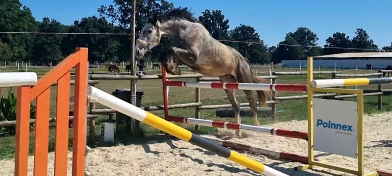 Elegant Oldenburg-International Gelding for Sale Discover the exceptional qualities of this stunning grey gelding, born in 2022, standing at a commanding height of 174 cm. With his impressive presence and refined pedigree, he is a perfect choice for riders seeking a talented and versatile partner. This young horse boasts a solid foundation in jumping, demonstrating natural talent and a promising future in the discipline. His calm demeanor and intelligence make him a pleasure to work with, and his striking appearance is sure to turn heads in the arena. Whether you're aiming for competitive show jumping or seeking a reliable partner for training and enjoyment, this Oldenburg-International gelding offers outstanding potential. Don’t miss the opportunity to own a promising young horse with a bright future ahead. For more information or to arrange a viewing, please contact us.