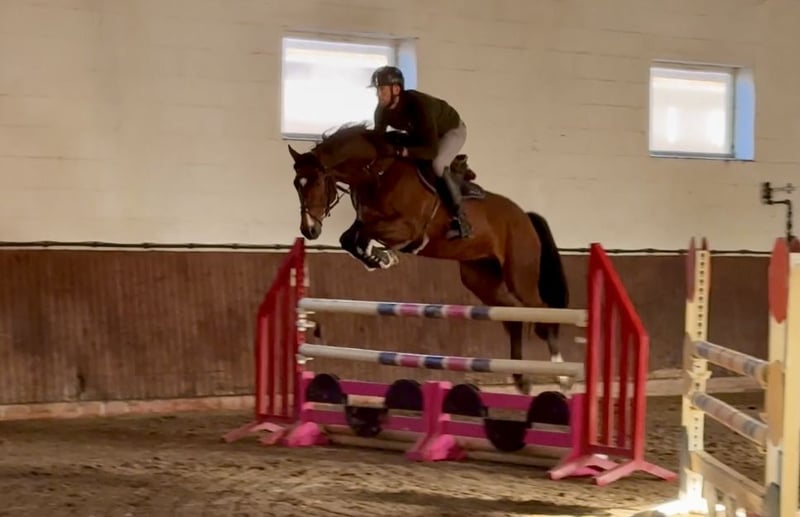 Liebe Kaufinteressenten, Für Fragen oder Terminvereinbarungen senden Sie uns bitte eine WhatsApp oder E-Mail. Telefonisch erreichen Sie uns WERKTAGS und am besten gegen Mittag. Sollte dem nicht so sein, bitte einfach eine Nachricht schreiben und wir melden uns zurück. Wir freuen uns auf Ihre Kontaktaufnahme! „Conti“ ist ein bildschöner, sehr qualitativer und einfach zu reitender Youngster, der sich mit sehr viel Übersicht und einer ganz wunderbaren Manier am Sprung zu präsentieren weiß. Direkt auf seinem ersten Turnier kann er die Richter von seiner wunderbaren Aufmachung überzeugen und bekommt Noten im 8er Bereich. Er ist aktuell in Springpferdeprüfungen der Klasse A und L mit guten Noten platziert. Auch zwischen den Sprüngen und in der Dressurarbeit ist er sehr angenehm und leicht zu arbeiten. Durch seinen liebenswerten Charakter und seine sehr unkomplizierte Art schließt jeder ihn direkt ins Herz und auch sein wunderschönes Erscheinungsbild zieht direkt alle Blicke auf sich. Ein sehr vielversprechender Youngster für eine tolle Zukunft im Parcours! Direkt vom Züchter. Guter TÜV vorhanden.