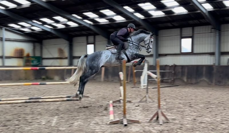 Our young horse by Eldorado out of a Cento mare shows great caution and confidence over fences. He is always spirited, has an excellent attitude, is easy to handle, and learns very quickly. Placed in show jumping competitions. A good X-ray report is available. Please feel free to contact us at 01742020310 if you're interested.