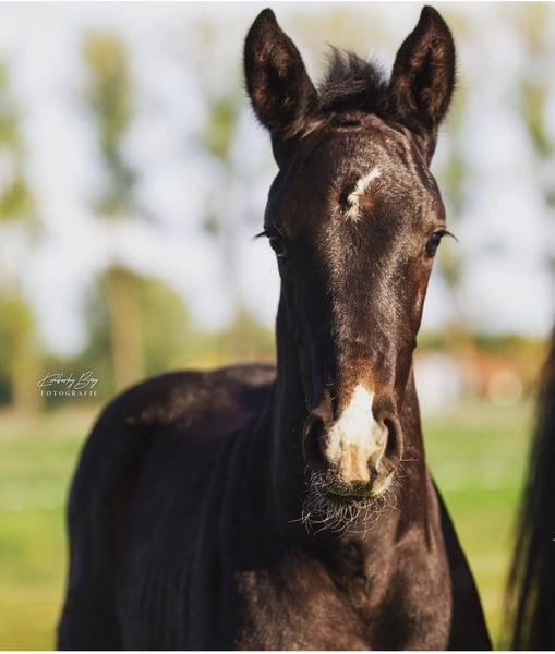 Elegant Oldenburg show jumping horse – dark bay gelding, born in 2021 This impressive Oldenburg show jumper is the perfect partner for leisure riding and hobby equestrianism, and also suitable as a companion horse. With his friendly nature and striking appearance, he captivates at first sight. Kaboom has been in my possession since day one, so here, priority goes to the horse rather than the price! He consistently behaves well and reliably under saddle and is a true buddy type. However, for health reasons, he is not suitable for high-level show jumping. He is well-trained, easy to handle, and shows great potential for recreational or amateur riding. If interested or for further questions, I am happy to assist. Please contact me for more information and to get a personal impression! As this is a young horse, trial riding is only available for serious inquiries, with a fee of €25 to cover expenses.