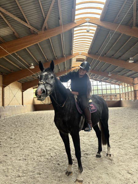 Vente d’un élégant cheval de saut Oldenburger – étalon, gris foncé, né en 2021 Ce magnifique cheval de saut Oldenburger est le compagnon idéal pour les loisirs et l’équitation de détente, également adapté en tant que cheval de compagnie. Avec son tempérament amical et son apparence impressionnante, il séduit dès le premier regard. Kaboom est en ma possession depuis le premier jour, la priorité allant donc à l’affection plutôt qu’au prix ! Il se montre toujours sage et fiable sous la selle, et est un véritable compagnon de confiance. Cependant, pour des raisons de santé, il n’est pas adapté au haut niveau en saut d’obstacles. Il est bien dressé, facile à manipuler et possède un fort potentiel pour le loisir ou le hobby. N’hésitez pas à me contacter pour toute question ou pour organiser une visite. Pour plus d’informations ou pour une impression personnelle, contactez-moi ! Étant donné qu’il s’agit d’un jeune cheval, une séance d’essai ne sera organisée qu’en cas d’intérêt sérieux. Une participation de 25 € sera demandée pour la protection.