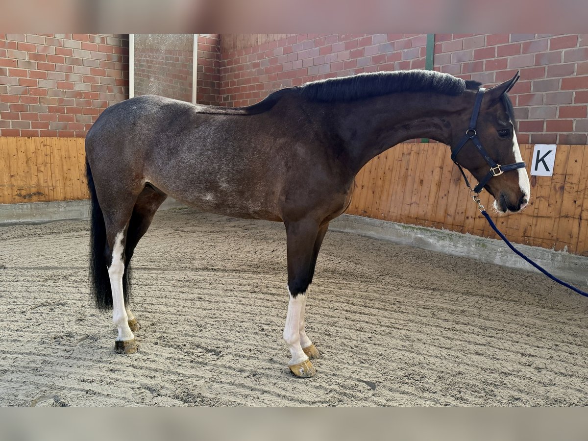 Zum Verkauf steht dieser 7 jährige Wallach mit Top Abstammung. Er kann Platzierungen bis 125cm nachweisen und ist 168cm groß. Er will immer auf die andere Seite und zeigt beim Springen genug Potenzial für den großen Sport. Dressurmäßig und im Handling auch super unkompliziert und einfach. Springt leicht die fliegenden Wechsel und ist auch im Umgang ein absoluter Schatz. Er ist ein Pferd was allerdings ordentlich Blut hat also keine Schlaftablette. Aktueller Tüv vorhanden. Platz vor Preis
