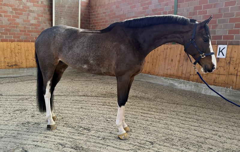 Na sprzedaż dostępny jest ten siedmioletni wałach o doskonałym pochodzeniu. Może pochwalić się osiągnięciami do 125 cm i ma 168 cm wzrostu. Zawsze chce iść na drugą stronę, a podczas skoków pokazuje wystarczający potencjał na wielki sport. W ujeżdżeniu i w obsłudze jest bardzo łatwy i nieskomplikowany. Lekko wykonuje zmiany nóg w powietrzu, a w codziennej pracy jest prawdziwym skarbem. To koń, który ma jednak sporo krwi, więc nie jest to koń na "drzemkę". Aktualny certyfikat zdrowia dostępny. Priorytet ma miejsce, nie cena.