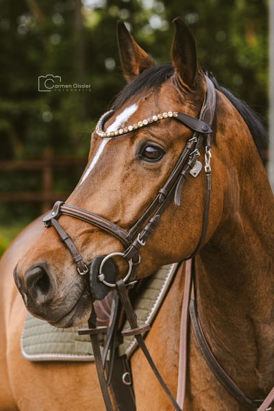 Carli is a 9-year-old Oldenburg gelding whose kind and affectionate nature brings joy every day. He is absolutely well-behaved, fearless, and is currently ridden by a 13-year-old girl. He gets along well with children, dogs, and other horses. He stands approximately 16.1 hands high. Carli has always been healthy with no prior medical issues. He is trained up to A** level in dressage and show jumping, with competition placements up to A** in jumping. I am looking for a family or a loving owner who can give him a wonderful life. He reliably goes out on rides alone or in groups, always showing a calm and dependable demeanor. He enjoys jumping small fences and is consistent and eager in his work. He also has a passion for dressage and enjoys groundwork, making training fun. Children can ride him without any problems. He is an excellent teacher for beginners or riders transitioning to new disciplines. Additionally, he is very elegant and easy to ride. Always motivated and up for any fun, he is ideal for an ambitious leisure rider. He can also participate in competitions, where he consistently performs at his best. Carli is loading calmly, stands quietly for the farrier, and is now looking for a loving home where he can become part of the family. He is a well-balanced, wonderful horse with a lovely temperament. Carli is a versatile all-rounder that is enjoyable in every aspect. Further information and videos are available upon serious inquiry. As it is very important to me that he finds a great new home, I would also like to learn some details about his potential new environment. A trial ride is possible by arrangement at any time. A fee of €30 will be charged, which will be refunded upon purchase. Location: 68542 Heddesheim