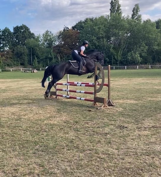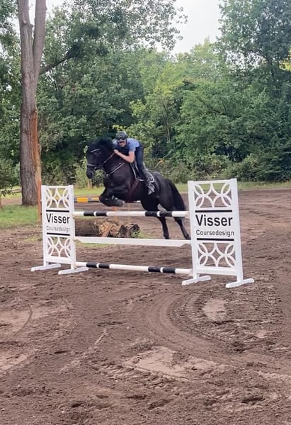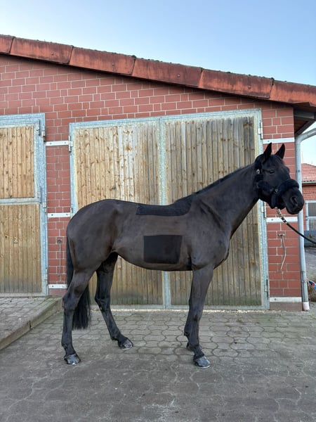 Zum Verkauf steht eine bis zur Klasse M turniererfahrene liebe 10 jährige Rappstute. Der Equidenpass ist gepflegt, d.h. regelmäßige Routine bzgl. Impfungen, Zähne, Entwurmung etc. Sie ist unkompliziert im Parcours, einfach zu reiten und vermittelt ein sicheres Gefühl. Auf dem Turnier ist sie im Springen bis zur Klasse M platziert. Auch in der dressurmässigen Arbeit zeigt sie sich brav, unkompliziert und zuverlässig. Im Umgang ein wahrer Schatz; Waschplatz, Solarium, Paddock, Weide kennt sie alles, schmiede- und verladefromm. AKU einwandfrei.