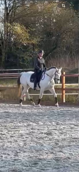 Zum Verkauf steht eine 12 jährige ca. 165 cm große tolle Stute! Sie wurde 4 jährig angeritten und ging dann in die Zucht! Im letzten Jahr wieder angeschoben und sowas von brav und toll! Sie ist vom Ausbildungsstand eher auf dem Niveau eines Jungpferdes aber ich sehe die Stute mit Familienaschluss ( vielleicht Mutter/Tochter Gespann) am besten! Geht alleine ins Gelände und ist absolut unerschrocken! Ihre Nachkommen gehen durch die Bank weg im Sport erfolgreich bis zur schweren Klasse! Ihre Mutter ging ebenfalls erfolgreich bis zur schweren Klasse im Turniersport! Tragend für Mai 26 von Casino Toulon! Kann danach wieder geritten werden! Ich wünsche mir ein ein tolles Zuhause mit Familienanschluss für die Stute!