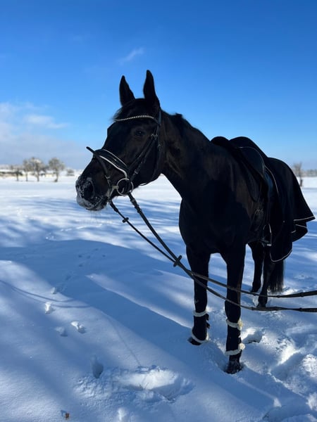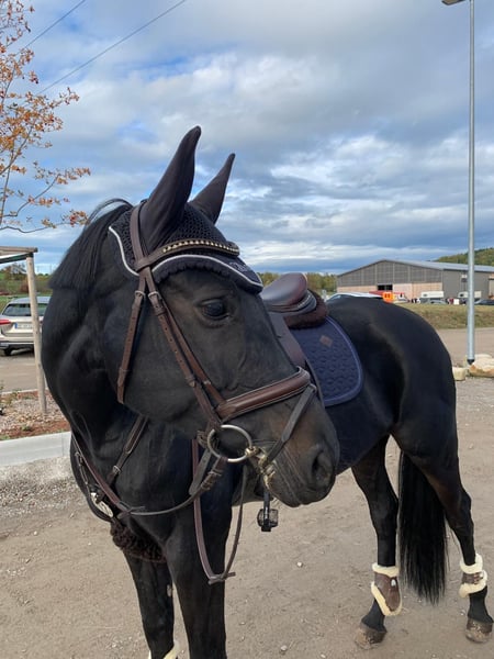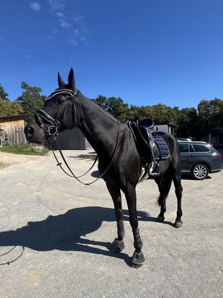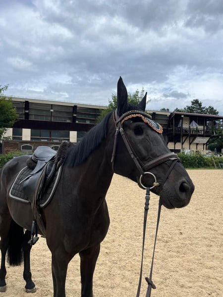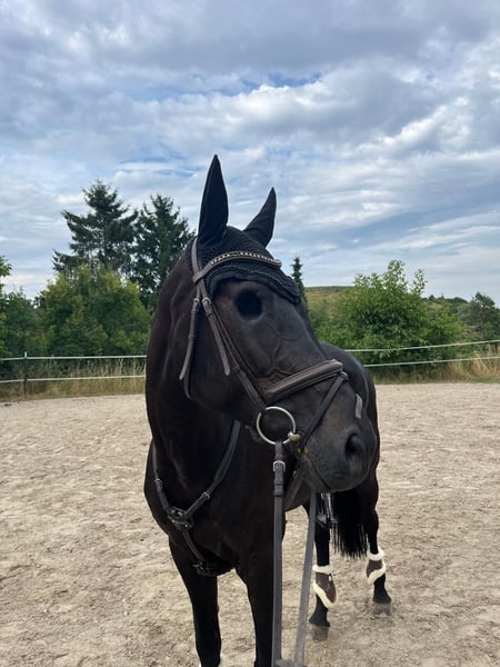 Dinzi is a 13-year-old Oldenburg mare who captivates with her loving and calm character. She loves going out for rides (even alone) and jumping, and she has a great deal of joy in versatility. Although dressage is not her strong discipline, she masters a few L-level exercises. Dinzi has a calm temperament and is also good with children. Unfortunately, Dinzi lost her right eye last year due to an eye injury, but she shows no signs of it. She manages very well even in jumping. She is now looking for a new job, as I can no longer meet her needs due to my university commitments. Due to a wheat allergy, Dinzi unfortunately cannot be kept on straw. Whether it's learning to ride, going out for rides, or starting in competition sports, she is up for any fun and is also suitable for children and beginners. I have had her for a short time and unfortunately have to give her up due to my health limitations. If interested, please feel free to call or send a WhatsApp message. :)
