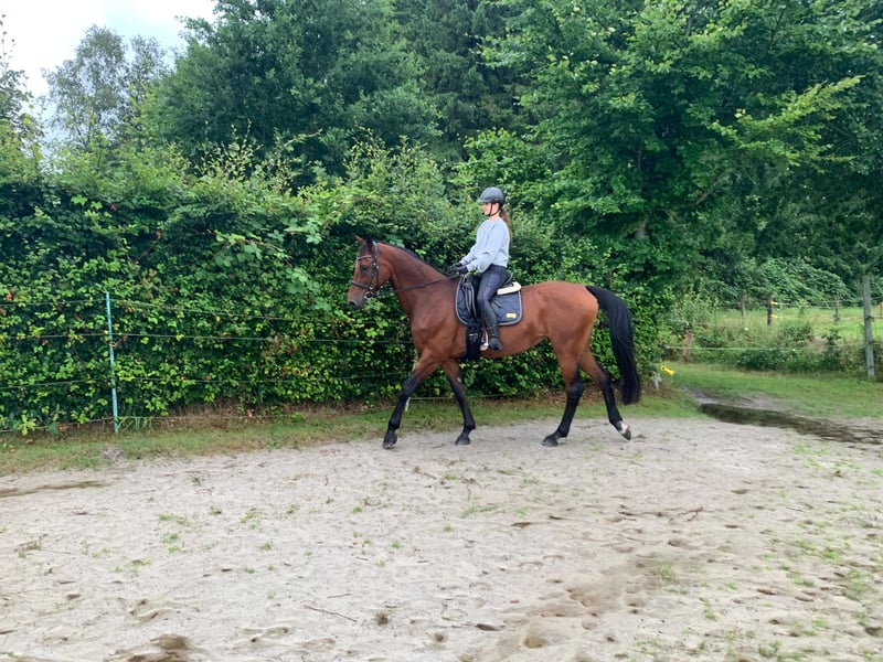 Wir suchen für Quintana, eine Oldenburger Stute (geb. 2010) ein neues Zuhause. Aktuell steht sie übergangsweise bei uns und wird täglich geritten, sie ist brav und geländesicher. Kein Steigen, kein Buckeln, kein Losrennen. Sie kennt Box, Offenstall und 24/7 Weide, respektiert Zäune und ist unkompliziert im Umgang. Vorgeschichte: – Griffelbeinbruch hinten rechts (2021) – Sehnenschaden (2022), wurde per Eigenbluttherapie behandelt, seitdem beschwerdefrei Sie ist wie gesagt seit mehreren Jahren ohne Probleme und wurde seitdem fast täglich bewegt. Röntgenbilder von 2021 vorhanden. Trense, Sattel, Halfter, Gamaschen, Putzzeug, Regendecke, Winterdecke, Fliegendecke gibt's dazu. Wir wünschen uns einen Endplatz bei jemandem der sie weiter fordert und vielleicht auch gerne mal mit ihr ins Gelände geht. Bei Fragen, egal welche, einfach melden. Ein persönliches kennenlernen ist jederzeit möglich. Viele Grüße, Nadine :)