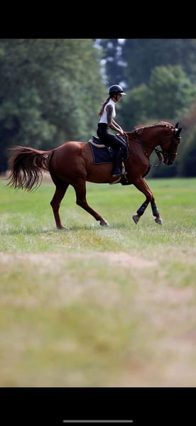 **Sales Advertisement: Oldenburg Show Jumper** For sale is a talented Oldenburg mare, born in 2010. I am looking for a great home for her, as I have little time due to my studies. She has excellent technique and great joy in jumping with plenty of energy. She goes out alone in the field. She still needs some reassurance from the rider at times, but this improves as she builds trust with her rider. The mare is well-behaved in general handling, well-trained, and has already given birth to foals at a young age. She is barefoot. A farrier and veterinarian are a given for her. Her teeth are checked and corrected annually. Due to her lineage, she is of course also suitable for breeding. I am looking for a home for her with plenty of turnout and species-appropriate care. If you are interested or have any further questions, please feel free to contact me.
