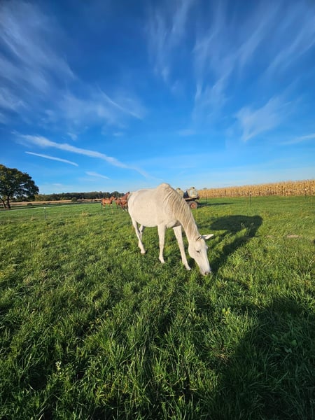 Baloudien ist eine tolle Zuchtstute, die ihren Fohlen die besten Eigenschaften mitgibt. Sie ist im Umgang sehr brav und unkompliziert. In der Herde weiß sie sich durchzusetzen und übernimm meist die Leitposition. Ihre Fohlen sind im Springsport erfolgreich (Sohn gekört).