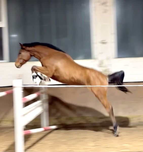 Here we present a highly talented mare with an excellent pedigree. Not only does her pedigree leave nothing to be desired, but her initial performances in show jumping over fences have exceeded all expectations. Already displaying great composure, excellent technique, and a powerful scope, combined with the perfect balance of energy and calmness, she impresses more and more with each outing.