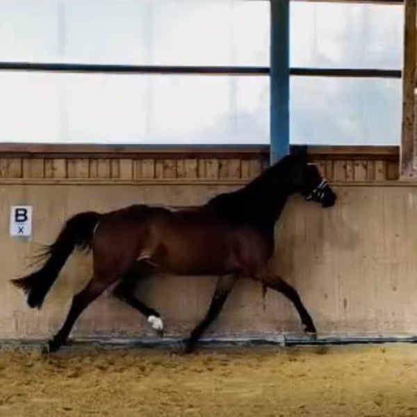 Zum Verkauf steht eine braune talentierte Jungstute von Chaplin x Valentino, welche jetzt bereit ist in ein neues Zuhause zu ziehen. Charakterlich ist die junge Stute, welche im März vier Jahre alt wird, einwandfrei. Sie wird in allen drei Grundgangarten geritten, wobei sie alles super mitmacht. Der Vater Chaplin ist selber ein hocherfolgreiches Springpferd unter Martin Fuchs mit zahlreichen Siegen auf 5 Sterne NIveau, darunter ein Weltcup Finalsieg, sowie drei Global Champion Tour Siege. Der Muttervater Valentino hat 50 Platzierungen und Siege bis zur schweren Klasse 3 Sterne S. Die Mutter Victoria`s Secret war selber in der Klasse M Springen erfolgreich, Vater Valentino / Pluspunkt /Pilot. Charakterlich ist die Stute Valentina einwandfrei, regelmäßig entrumt, geimpft und dem Hufschmied vorgestellt. Seid einer Woche wurden kleine Sprünge unter dem Sattel absolviert, wobei Valentina einen sehr guten Zug gegen das Hindernis zeigte. Sie bemüht sich sehr dem Reiter alles richtig zu machen. Jetzt ist sie bereit in fördernde Hände zu gehen. Ein Probereiten ist jederzeit möglich.