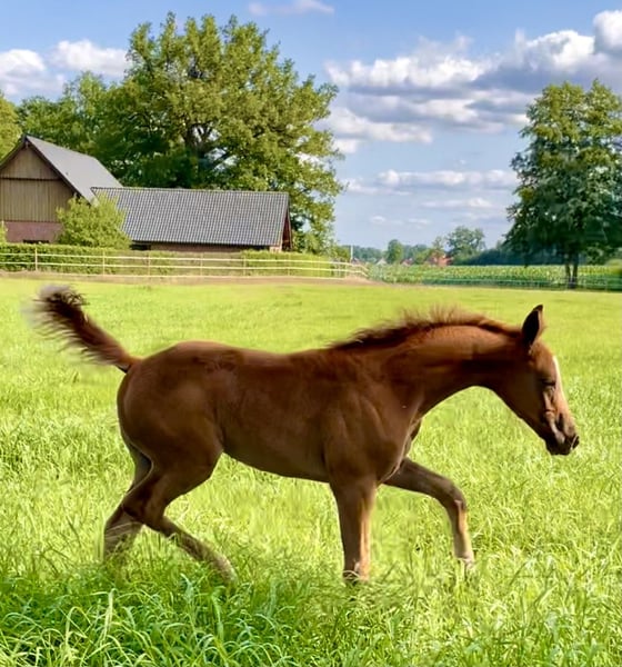 In vendita c'è una talentuosa cavalla Oldenburger, nata nel 2021. Questa bellissima cavalla baia si distingue per il suo carattere impavido e il suo modo di essere amichevole. Sarà anche un'ottima cavalla per il passaggio a livello superiore o per i bambini. La cavalla mostra già abilità promettenti nei primi salti e ha il potenziale per avere successo in futuro nelle categorie superiori. Il suo carattere amichevole e aperto la rende un partner ideale per i cavalieri che cercano un compagno affidabile sia in allenamento che in gara. La madre ha avuto successo con amatori fino ai salti di categoria M. È ben educata, regolarmente vaccinata e sverminata. Per ulteriori informazioni o domande, sono a vostra disposizione.