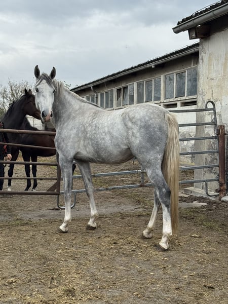 Verkauft wird diese fünfjährige Schimmelstute von Diaron x Cornet‘s Stern. Sie ist ein sehr lernwilliges Pferd mit viel Vermögen und Vorsicht am Sprung.