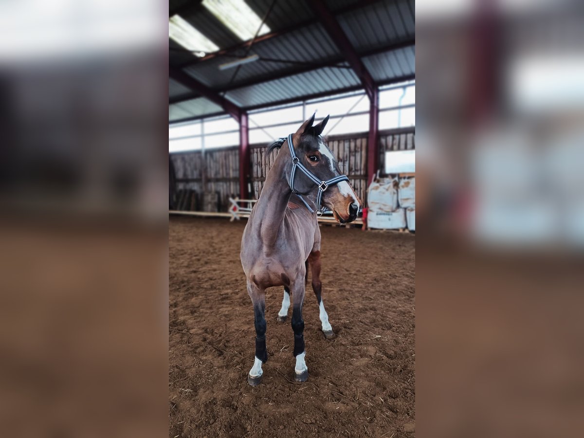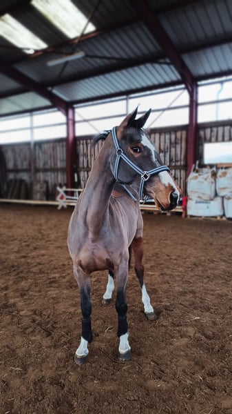 Wir verkaufen aus Zeitgründen unsere selbstgezogene 5j. Stute v. Aganix du Seigneur x Clarimo x Cash and Carry (Mutter bis M* platziert, alle Halbgeschwister aktuell bis 125 cm erfolgreich) Sie hatte 4j. ein Fohlen und seit Dezember unter dem Sattel, springt im Moment kleinen Parcours unter dem Sattel und ist bereit für die ersten Turniereinsätze, immer motiviert, lernwillig und brav unter dem Sattel und im Umgang, kennt Führanlage, Anhänger fahren, Waschplatz, Koppel etc TÜV ist aktuell aus November Bei Interesse oder Fragen gerne telefonisch unter 0162/8683824