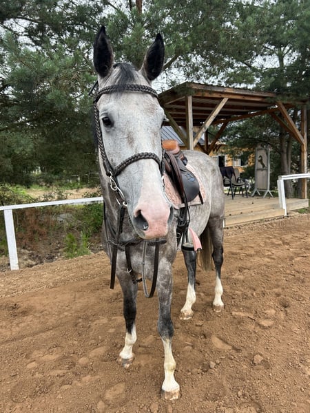 Young mare with great mind! Saddlebroken in March 2025, before had foal, start show at November. She is jumping everything, is brave in forest and is 100% healthy - has perfect xrays from april 2025. She is really kind and well-behaved mare, is easy and safe to ride, so she is albo good choice for amateur rider. More info whatsapp - +48693895779