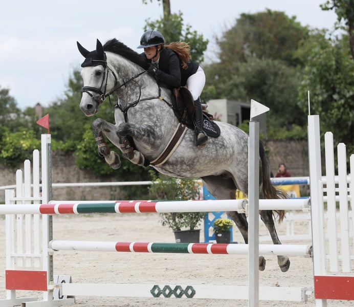 Due to a reduction in stock, we are offering our beautiful, self-bred 6-year-old mare Clairy. She is the ideal horse for ladies or riders transitioning from other disciplines. Caroly x Lord Paul x Zeus Currently, she has won at A** show jumping, placed at L, and recently completed her first M* with one fault. She has the potential for even more. Her compact size (approximately 16.1 hh) makes her easy to handle, and she is never strong or difficult (ridden with a water bit and by a lady rider). She is not spooky in the arena and jumps water and all types of terrain. She is farrier- and loading-friendly, enjoys hacking out calmly and willingly. With appropriate training, we could also see her in basic dressage. Due to her age, she is not suitable for beginners. We expect her to be ridden at dressage level A. TÜV available upon request. Further information and videos gladly via private message. Location: 66802 No emergency sale. No dealers.