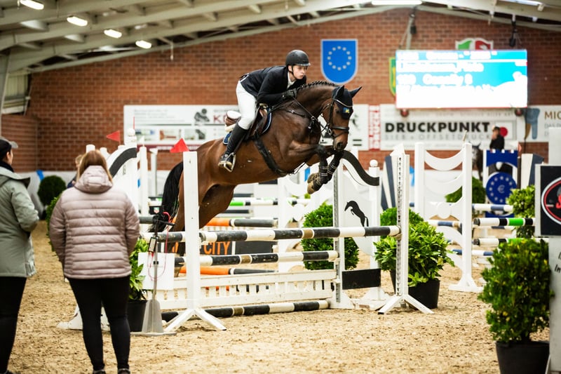Conelly is a 7-year-old bay mare by Conthargos out of Diarado. Conthargos has been making a name for himself worldwide in recent years through his offspring's success. Diarado is one of the top Holsteiner stallions and has achieved success up to the advanced levels. Her pedigree also includes Quidam's Rubin, tracing back to the legendary Landadel. Conelly was awarded elite foal status. She was backed later than usual. In handling, she is very straightforward. Last year, she was bred to Ogano Sitte. Conelly has been under saddle again since October, and everything went very smoothly. She is familiar with pasture turnout with other horses, as well as truck and trailer loading. Conelly is not a beginner's horse. She is also very interesting as a broodmare due to her distinguished pedigree. VAT invoice available!!!