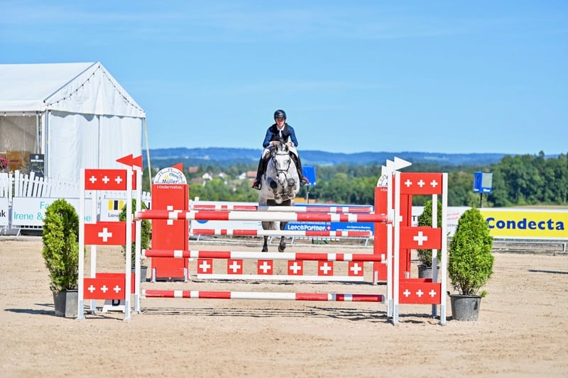 Destiny, hervorragend gezogen und selbst für die Zucht von grösstem Interesse, ist eine Schimmelstute, die ihren Ahnen mehr als gerecht wird. Destiny, mit sehr viel Qualität ausgestattet, hat Feuer und Biss und gibt für ihren Reiter alles, was sie nur kann. Sie ist bis 1.30m gut platziert, hat 1.35m bereits in Angriff genommen und steht kurz vor dem Eintritt in die S-Klasse. Sie ist für jeden Reiter, der ambitionierte und motivierte Pferde mag, sowohl ein Traum, wie auch ein Erfolgsversprechen, sie wird für jeden Reiter/jede Reiterin durch's Feuer gehen.