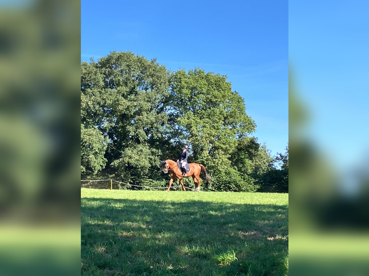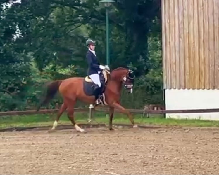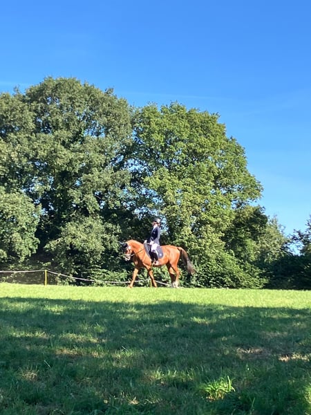 Verkauft wird 9 jährige Fuchsstute von Crumble . Cara Mia ist bei mir nur in der Dressur gefördert worden , dort läuft sie sicher auf L -Niveau. Platzierungen in A und A** sind vorzuweisen ( 2*, 4*,4*) .Erste L Dressuren ist sie bereits auf Turnier gelaufen und konnte sich jedes Mal im guten Mittelfeld positionieren. Sie kennt Schmied ( aktuell 4 Eisen ,kann aber auch mit nur 2 laufen), regelmäßiges impfen, alleine oder in der Gruppe ausreiten, Padock, sowie Koppel . Auf der Koppel ist sie eher eins der ranghohen Pferde. Sie ist kein reines Anfängerpferd in der täglichen Arbeit,sie möchte gefordert werden beim ausreiten etc ,aber schon. Ihr Manko und sie wird auch in nur nachweislich ,fachkundige Hände angegeben : Ella hat allergisches Asthma , in den Wintermonaten dank inhalieren, ist davon wenig bis nichts zu merken ( kann ganz normal bewegt werden) ,im Sommer gibt es gute und etwas schlechtere Tage .Mein Tierarzt möchte aber nicht ausschließen, wenn sie zum Beispiel an die Nordsee kommen würde , dass ihre Symptome verschwinden würden/ könnten. Sie läuft seit fast 2 Jahren nur auf Inhalation und der Bewegung um ggf an nicht so guten Tagen , ihre Atemwege zu reinigen. Rö-Bilder vom Rücken aus 2024 liegen beim Tierarzt vor, ohne Befund . Ich könnte sie mir auch als Zuchtstute vorstellen, da sie eine sehr gute Abstammung hat . Ob das Asthma vererbbar ist ,oder ob nicht ,konnte mir leider nicht in der Klinik abschließend erklärt werden , es wird davon ausgegangen ,dass es nicht vererbt wird. Abgabe ,auch nur , weil ich doch sportlicher ambitioniert bin, als dass es zu ihren Umständen auf Dauer passen würde. Sie ist seit dem sie 3 jährig ist , in meinem Besitz.