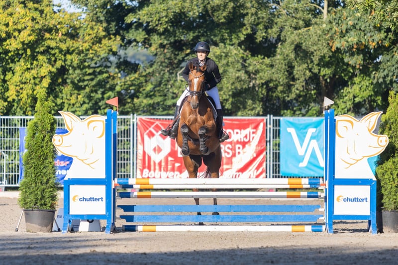 LITTLE JAZZ Jazz is a 9-year-old mare with a height of approximately 1.63m. She is easy to ride in dressage, pleasant to ride around the course, and not spooky at the jumps. Currently, she jumps 90cm, but she definitely has the potential for higher. Jazz has a very sweet character; when she trusts you 100%, she will do anything for you. She is well-behaved on trail rides, both alone and in a group, 100% traffic-safe, well-mannered on different terrain, and stands nicely in the trailer. She would also be very suitable for eventing. If you have any questions or are interested, please text, call, or email the contact details below. 0682393901 Sleejenneke9@gmail.com