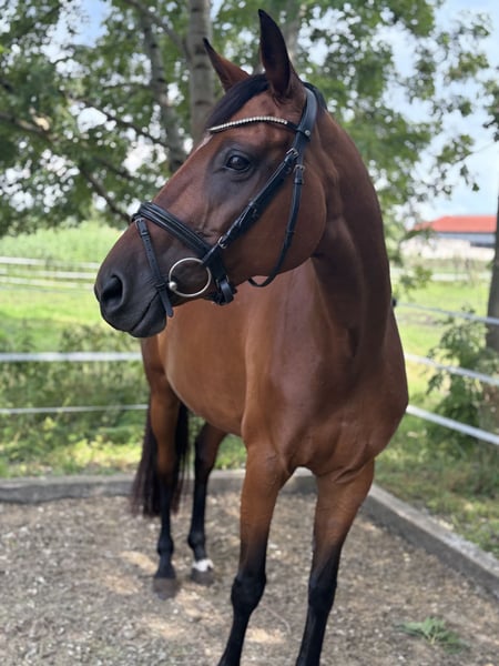 I am selling my 8-year-old athletic and motivated mare by Asagao xx x Carnando. 🐎 She stands approximately 1.64 meters tall. She has placements in young horse competitions at class A level across all three disciplines. Location: 97843 Neuhütten