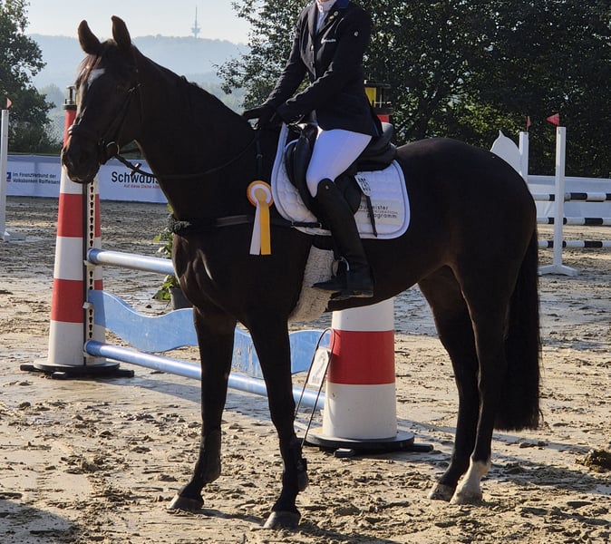 Stunning broodmare awarded breeding premiums, available due to health issues and the consequent retirement from competitive riding, now in the best hands. Breeding association: Oldenburg show jumper Excellent pedigree including Calido, Contendro, Feinblick, Just Spectacular xx, and Mytens xx. Previous competition record in dressage and jumping up to class L and auction level. Very rideable, excellent conformation with lots of impulsion and lightness (she is shown in the dressage video without shoes) and very powerful, agile, and cautious jumping technique. She has plenty of go, but also a very honest and sweet character. She would enjoy hacks, ground work, and other activities. Due to a past injury (+chip), ongoing athletic performance cannot be guaranteed, so she is offered at a significantly reduced price as a broodmare or leisure horse. For breeding, the current condition is irrelevant. More information gladly by phone.