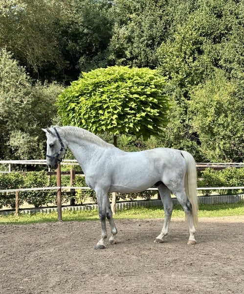 For sale is a truly exceptionally kind and uncomplicated stallion who impresses not only in sports but also with his lovable and friendly nature, truly a gentleman with a sporting spirit and a heart in the right place ✨ Jimmy always keeps a clear head, whether in training, at competitions, or out on the trails; even a mare in heat cannot disturb his calm, yet he has enough go to effortlessly jump a course of 125cm. He always wants to get to the other side and consistently tries to compensate for riding mistakes. With his great dynamics and technique over jumps, there seem to be no limits for Jimmy. He has been presented and placed in the current competition year. In dressage, he is very pleasant to ride, without a whip or spurs, always responsive and light to the aids. Of course, he is also suitable for children or less experienced riders. In handling, Jimmy does everything you could wish for—leading, grooming, grazing, paddock, lunging, trailer loading—of course without a stallion gate and even with neighbors! Loading onto a truck, washing, riding without a saddle… this is all no problem at all! We wish for this truly exceptional horse a 5-star ⭐️ home where he lacks nothing. Where he can be an athlete, friend, and heart horse—where he will be pampered and lovingly supported, yet still allowed to be a horse! 💛 Jimmy will only be placed in the very best hands ✨ A meeting and trial ride is possible at any time; we charge a fee of €30, which will be deducted from the purchase price. Location: 65549 Sale on behalf of someone else.