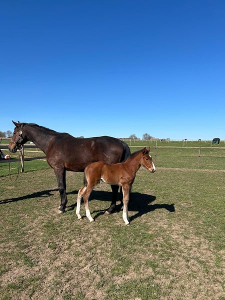 Poulin de étalon magnifique et bien dessiné, fils de Stakkato Cornet. Né le 14.03.2025. Le père Stakkato Cornet a impressionné lors de ses premières compétitions en tant que cheval de quatre ans. La mère a couru avec succès jusqu'au niveau M en saut d'obstacles (jusqu'en 2019). La jument est dans l'élevage depuis 2020. Il y a des frères et sœurs qui ont couru avec succès jusqu'au niveau S en saut d'obstacles.