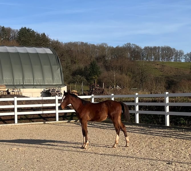 Ich verkaufe unser Hengstfohlen von Casino Grande x Diarado x Balou du Rouet. Geboren ist er im Mai 2025. Super artig und mit sehr schönen Grundgangarten ausgestattet. Als Prämien Fohlen prämiert. Er wird sicherlich ein super Sportpartner. Ich betreibe eine kleine Hobby Zucht somit sind die Fohlen oft in den Händen. Ich würde mir wünschen das der kleine Mann nicht zur durchreich Ware wird.
