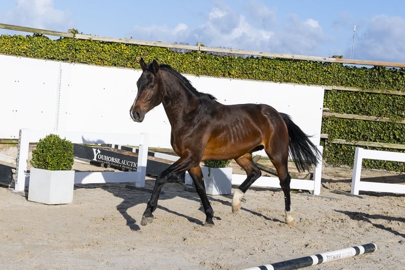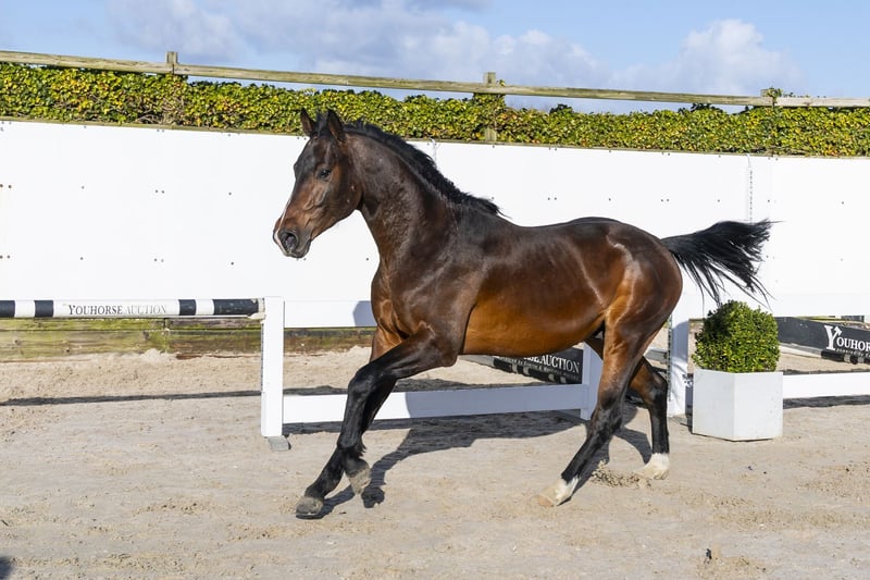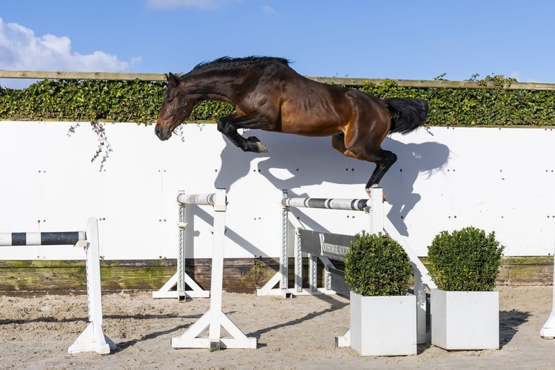 Domino is een paard met een zeer sterk model en veel uitstraling. Hij beschikt over een sterke lendenpartij en laat dit direct terugzien in zijn afdruk op de sprong. Een krachtig paard dat met veel gemak en vermogen springt. Hij toont zich voorzichtig en combineert kracht met een mooi bloedtype. Een hengstenmodel met veel kwaliteit. Hij komt uit een zeer goede stam, wat duidelijk terug te zien is in zijn manier van springen. Naar onze mening een compleet paard met vermogen, instelling en kwaliteit. Gezien zijn bouw verwachten wij een goede rijdbaarheid. Kortom, een compleet sportpaard met veel toekomst. Vader Diaron Old springt op 1.50m niveau en is een zoon van Diarado (1.50m) uit de invloedrijke Diamant de Semilly-lijn. Hij bracht al meerdere sportpaarden op niveau zoals Diarona PS (1.55m), Diarouge Blue PS (1.50m) en Diakatisa PS (1.50m). Een hengst die vermogen en techniek doorgeeft. Moeder Galdaire is een dochter van Lando (1.60m) en komt uit een zeer sterke prestatielijn. De moederlijn is uitzonderlijk sterk met meerdere paarden op hoog niveau: PSG Junior – 1.60m Grand Prix Conladaire – 1.60m Komet des K Z – 1.60m Colando 21 – 1.45m Mewando – 1.45m E-Lady – 1.45m Zaffran – 1.45m O’Lady – 1.50m Chaccier – 1.40m Goodlady – 1.40m Een stam die structureel paarden op 1.45m tot en met 1.60m niveau levert.