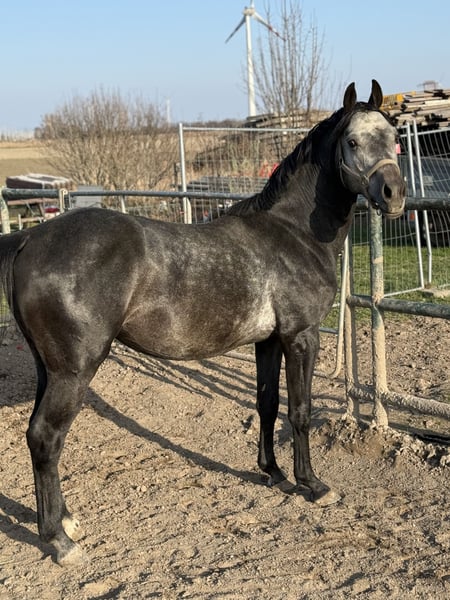 For sale: Casilaco, a 4-year-old Oldenburg stallion by Casino Berlin OLD. He possesses three excellent basic gaits. In daily handling, he is uncomplicated, halter-trained, and farrier-friendly, and is currently being handled as a bareback horse. He is completely unbothered by external stimuli such as tractors or passing trains. Since Casilaco is still unbroken, he offers the perfect opportunity for riders who want to develop an honest young horse with international jumping genetics from the ground up.