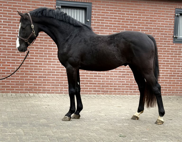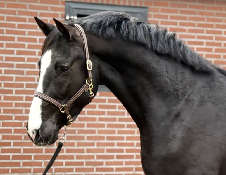 Prachtige zwarte springhengst met veel springpotentieel. Geboren in 2022. Zijn huidige stokmaat is 1.68 m. Zoals u kunt zien op de foto is hij wat week in zijn rug, valt wat weg achter de schoft, mede daarom is hij scherp geprijst. Het staat een sportcarriére niet in de weg. Voor de rest is hij zeer correct en gezond. Hij is een prettige hengst in de stal en aan de hand. Top Holsteiner stamboom: DIAMANT DE OPERETTA x QUINTERO De vader is een nakomeling van DIAMANT DE SEMILLY. Hij heeft op internationaal niveau gesprongen. De moeder van dit paard heeft zelf op internationaal niveau (1,45 m) gesprongen. Bij interesse graaf bellen of appen 📱 +31(0)643197337 📱 +31(0)648271956