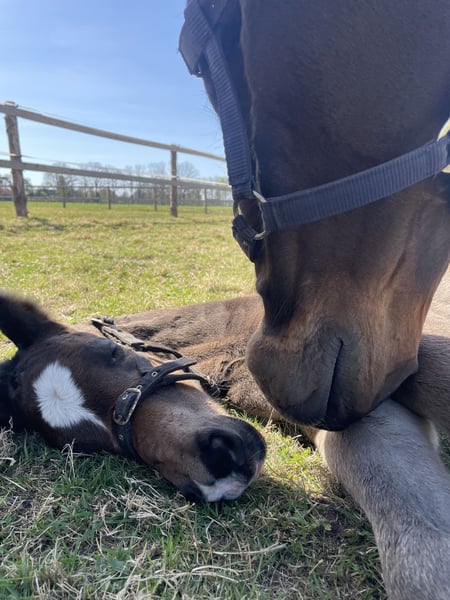 Nino S ist ein schicker groß werdender am 12.04.2025 geborener Hengst. Er stammt ab von Newmarket ( Chacoon Blue x Numero Uno x Carthago) aus einer Quintender x Landjonker Mutter. Nino kennt das Fohlen ABC, ist frisch abgesetzt und wächst im Herdenverband mit anderen Hengst-u. Stutfohlen auf. Grundsätzlich besteht bei Interesse die Möglichkeit, dass er die Aufzucht über bei uns und seinen Kumpels zu bleiben( auch als Hengst). Seine Mutter habe ich von ihrer Züchterin übernommen und sie bis M-Springen vorgestellt. Leider hat sie sich in der Box beim wälzen verletzt (mit dem Hinterfuß unter der Boxentür her getreten und festgehangen), weshalb wir sie nach dem Heilungsprozess in die Zucht nahmen und nicht wieder im Sport eingesetzt haben. Unter dem Sattel überzeugte sie mit leistungswillen, Mut, Vermögen, Vorsicht und Ergeiz, wie guter Rittigkeit, welches sie bislang an ihre Nachkommen und ihre erste Enkelin weiter gibt. Ihre erste Tochter ist nun 6jährig. Sie hatte 4j. bereits ein Fohlen und ist nun bis M-Springen erfolgreich und wir blicken mit Spannung und Vorfreude auf das nächste Jahr. Bislang hat sich Nino‘s Mutter immer sehr groß vererbt (175-180cm), daher gehen wir davon aus, das auch er groß wird. Trotz der Größe waren seine Geschwister bislang alle immer sehr rittig, einfach zu reiten und vom Typ geschlossene Pferde. Eingetragen wird er bei einem Sammeltermin bei uns am Hof im Oldenburger Springpferde Verband, da auch hier seine Mutter eingetragen ist und unsere anderen Fohlen eingetragen werden. Ein kennenlernen ist jederzeit möglich.