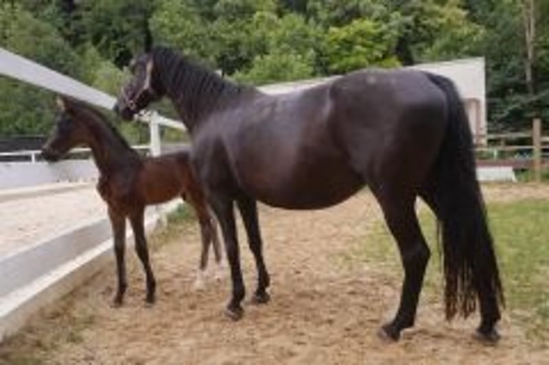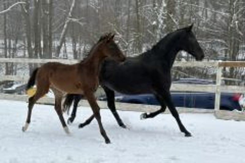 The Oldenburg mare Helene Beatrix II de Cologne combines an exceptional pedigree, rideability, character, and proven breeding suitability (she has already produced an excellent foal). She has been ridden casually by a 14-year-old rider and demonstrates very good basic gaits. After a 1.5-year foal pause, she is ready to be restarted under saddle. This mare is ideal for ambitious dressage riders, amateurs, and professional breeders. She possesses the necessary drive and enjoys being engaged. Her sire, "Hofrat," and his sire, "Gribaldi," were successful at Grand Prix level and are highly regarded dressage sires. Her dam, "Bezaubernde Jeanie de Cologne," is still actively competing up to M-level dressage (2025). The dam’s sire, "Belstaff" (DE431318312207), was victorious in the Grand Prix S*** (2021). This pedigree combines modern dressage performance, rideability, and genetic strength. Breeding suitability: She has already produced a very good foal, which she accepted easily, remained in foal, and foaled without issues. She cares lovingly for her foal. The stallion foal (sire: Farbenspiel) is also for sale.