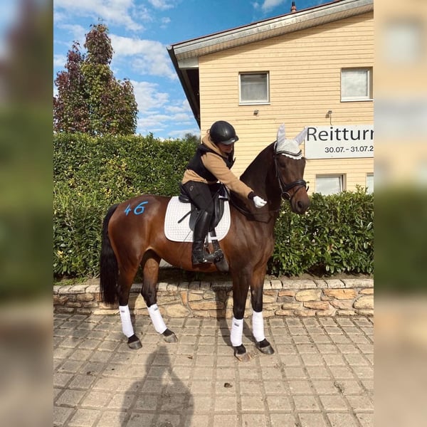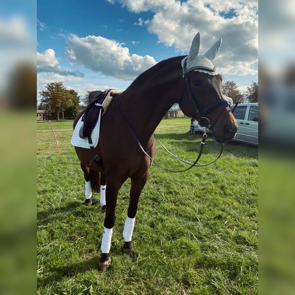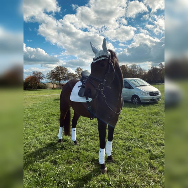 Ich habe mich schweren Herzens dazu entschieden, meine Stute Bella abzugeben. Sie wird nur in aller beste Hände verkauft bei denen sie einen Endplatz findet. Es ist kein Notverkauf. Bella ist 10 Jahre alt, 1,61cm groß und eine super verschmuste anhängliche Stute. Sie ist sehr sensibel und man braucht viel Ruhe bei ihr. Sie braucht Sicherheit, aber auf eine Sanfte weiche Art. Sie stand nun knapp 2 Jahre auf der Koppel und durfte nichts tun. Somit müsste man sie nun erst wieder anschieben. Bella ist eine Stute die Routine braucht. Sie ist kein Pferd mit dem man aufs Turnier kann. Sie wird nur an Freizeitreiter verkauft. Bella hat 3 wunderbare Grundgangarten, und ist durchaus für die höheren Disziplinen gut geeignet, sie ist sehr lernwillig und will arbeiten. Sie kommt nur mit dem Trubel auf dem Turnier nicht klar. Sie geht super gerne ins Gelände. Aber auch hier sollte man sie wieder langsam dran gewöhnen. Sie hatte bisher noch nie Unarten gezeigt. Auch beim anreiten nie. Sie hat noch nie gebuckelt und ist auch noch nie durchgegangen. Ich habe sie als Jährling gekauft und ich hänge wirklich sehr an ihr, daher gebe ich sie nur in allerbeste Hände ab. Bei Fragen gerne melden :)