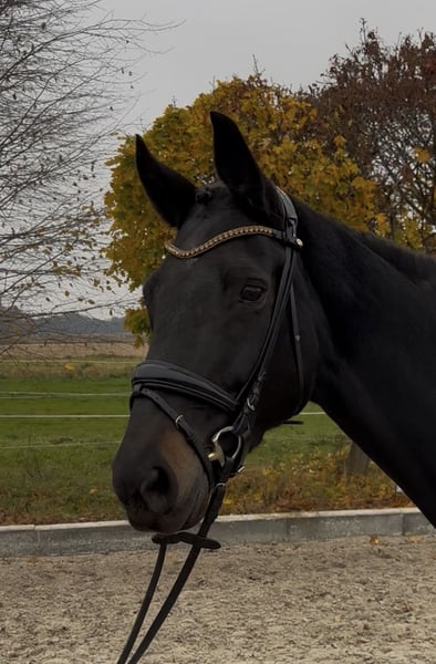 Beautiful dark bay mare suitable for advanced dressage, trained up to S level.