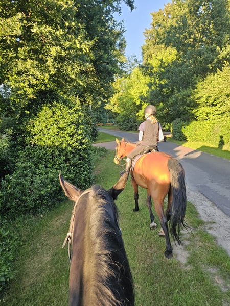 Ich verkaufe unsere 10 jährige Oldenburger Stute. Sie hat ein Stockmaß von 1.70m und ist kerngesund.Aus gesundheitlichen Gründen meinerseits, werde ich ihr einfach nicht mehr gerecht.Sie ist super Lieb und unerschrocken. Außerdem verlade und schmiedefrommt.Sie wird regelmäßig entwurmt, geimpft und dem Zahnarzt vorgestellt. Selbstverständlich kennt sie alle Lektionen und wurde super Ausgebildet. Dennoch ist sie kein Anfängerpferd.Wir betreiben Offenstallhaltung.Sie ist verträglich mit anderen Pferden dabei rangniedrig. Mir ist es sehr wichtig, dass sie in ein liebevolles zu Hause kommt in fairer Haltung. Damit unsere 5 jährige Stute dann nicht alleine ist, suchen wir ein Endmaßpony welches natürlich gesund sein und keine unarten haben sollte.Dieses würde dann von meinen Töchtern geritten werden. Es sollte gerne und sicher ins Gelände gehen und springen können. Falls jemand interesse an eine Reitbeteiligung haben sollte, haben wir selbstverständlich alles vor Ort, wie zum Beispiel einen Reitplatz und ein sehr schönes großes Gelände mit viel Wald. Bei weiteren Fragen und ernsthaftes Interesse gerne melden.