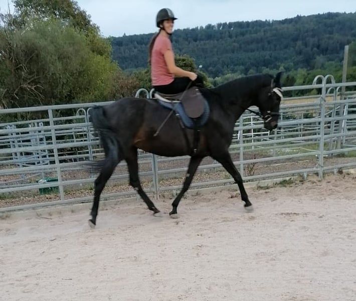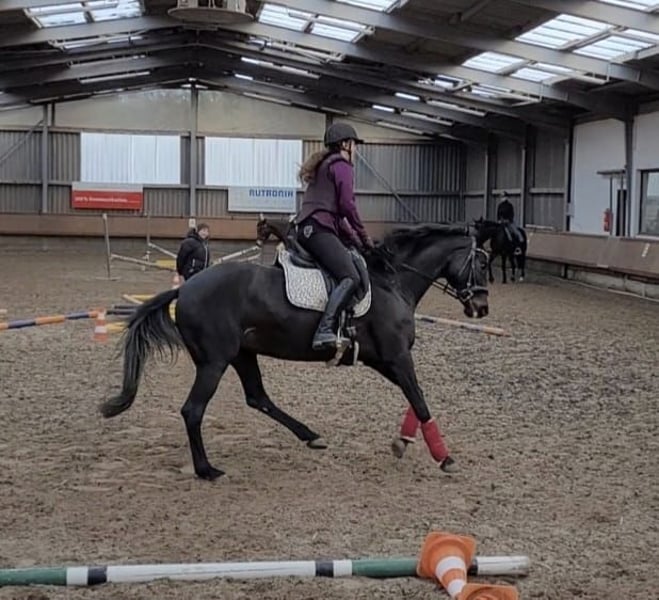Verkaufe schweren Herzens meine schicke 168 cm große, 11 jährige Oldenburger Stute, da ich ihr aus privaten Gründen einfach nicht mehr gerecht werde. Sie ist ein absolut unverbrauchter Allrounder (Dressur gezogen, springt gerne und geht liebend gerne ins Gelände, liebt Bodenarbeit und beherrscht auch schon ein paar Tricks) mit schönen Gängen. Sie braucht einen feinfühligen und sicheren Menschen. Sie wird erst seit 5 jährig geritten - war vorher Zuchtstute. Beim reiten ist sie stets artig (kein zur Seite springen, durchgehen, bocken, steigen, ...) aber an manchen Tagen kann sie etwas klotzig sein. Dann drückt sie aber nur gegen das Bein und man muss halt richtig zum reiten kommen. Sobald du Ihr eine stabile Anlehnung, vertrauen und Ruhe geben kannst, hat man ein ganz tolles Pferd, das fast alles für einen macht. Sie geht sicher alleine und in der Gruppe ins Gelände. Bis vor 2 Jahren waren wir regelmäßig auf Lehrgängen (Dressur (A/L Niveau), Stangen und Springen (E Niveau - bin nicht so der springer), Extrem-Trail, Bodenarbeit, Schrecktraining) und haben auch schon an zwei kleinen Dressur-Turnierprüfungen (A) teilgenommen. Aktuell machen wir eher viele Wanderritte (ca 2 - 2,5 h) und ich reite sie ambitioniert in der Halle oder auf dem Platz. Sie lässt sich mit Ruhe verladen und ist absolut lieb beim Hufebearbeiten (auch mit Flex). Sie lebt derzeit in gemischter Offenstallhaltung und kommt damit super zurecht. Sie ist mittelrangig - ranghöher. Sie läuft Barhuf (mit Hufschuhen im Gelände) und braucht im Winter im aktuellen Stall auch keine Decke. Sie liebt Wasser und Pfützen und sich im Schmutz zu welsen ;-) dementsprechend wird sie auch gerne ausgiebig geputzt und betüddelt. Sie ist aufgrund ihrer Abstammung ggf auch für Züchter interessant. Sie hatte bereits zwei tolle Fohlen. Ich wünsche mir für sie aber jemand, der sie wieder regelmäßig bespaßt. Sie liebt die Arbeit und Ihren Menschen. Sie ist allerdings eher ein Zwei-Mann Pferd (heißt Besitzer und ggf. Noch eine Rb). ich schätze sie so ein, dass sie mit vielen verschiedenen Menschen nicht so gut zurecht kommt. Fremden gegenüber kann sie auch stutentypisch mal die Ohren anlegen. Sie macht aber nichts. Die Rosse merkt man ihr beim reiten absolut nicht an. Kommt gerne vorbei und lernt sie kennen. Sie steht in Bad Herrenalb und kann ausprobiert werden. Verkauf nur in allerbeste Hände. Platz vor Preis
