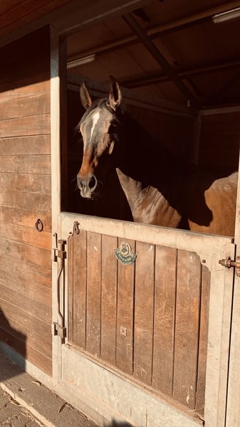 À vendre, une magnifique jument Oldenbourg, née en 2013. Cette beauté brunâtre se distingue par son excellente lignée et son apparence élégante. Cette élégante jument dispose de trois allures de base exceptionnelles. Elle est très facile à manipuler et a déjà donné naissance à trois superbes poulains. Elle convient également comme cheval de loisir et est un partenaire sûr en extérieur. Elle a l'habitude de sortir seule. Si vous êtes à la recherche d'une jument de reproduction fiable et bien entretenue, alors cette jument Oldenbourg est le choix parfait pour vous. Pour toute question ou pour plus d'informations, veuillez nous contacter.