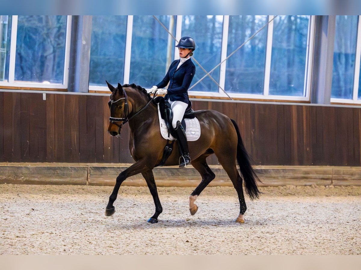 Zum Verkauf: äußerst liebenswerte, erfahrene und charakterstarke Stute mit hoher Qualität Wir bieten hier eine besonders liebe und anhängliche Stute zum Verkauf an. Ein Pferd, das durch sein angenehmes Wesen, seine Ehrlichkeit und seine vielseitigen Einsatzmöglichkeiten sowohl im Sport als auch außerhalb überzeugt. Diese Stute verfügt über umfangreiche Wettkampferfahrung. Sie ist leicht und fein zu reiten, reagiert auf sehr leichte Hilfen und ist scharf, ohne heiß oder schreckhaft zu werden. Sie vermittelt dem Reiter ein wunderbares Gefühl und bleibt stets aufmerksam. Unter dem Sattel besitzt sie eine ausgezeichnete Schrittqualität, schöne ausgedehnte Gänge und einfache Wechsel. Appuyements führt sie sehr mühelos aus. Im Training zeigt sie bereits einen korrekten und vielversprechenden Beginn von Piaffe und Passage. Zudem springt sie bereits einige Sprünge. Im Viereck gibt sie stets ihr Bestes und arbeitet mit Freude mit. Alle Übungen meistert sie mit großem Leichtigkeit. Kurz gesagt, ein sehr angenehmes Turnierpferd. Sie ist sowohl an Zügel, als auch an Kandare und Zügelzügel zu reiten. Auch außerhalb der Dressur ist sie ein äußerst angenehmes Pferd. Sie springt gern, und im Training absolvieren wir Parcours bis 1,00 m für Abwechslung. Außerdem genießt sie sichtbar Spaziergänge im Wald und am Strand, die wir wöchentlich unternehmen, sowie entspannte Spaziergänge an der Hand im Wald. Im Umgang ist sie so zuverlässig, dass selbst ein kleines Kind sicher mit ihr spazieren gehen kann. Incognito ist sehr menschenbezogen, was die Bindung zu ihr zusätzlich stärkt. Sie ist im Umgang äußerst unkompliziert: brav beim Hufschmied, beim Tierarzt und beim Transport. Ihr Charakter ist ruhig, gelassen und panikfrei. Sie freut sich immer über Streicheleinheiten und Kribbeln. Sie ist topgesund. Im August 2024 wird sie klinisch und röntgenologisch vollständig untersucht, inklusive Hals und Rücken, ohne Befunde. Incognito hat keine Haltungsfehler. Wir suchen ein liebevolles und passendes Zuhause, in dem sie alle sportlichen Chancen erhält und die nötige Aufmerksamkeit bekommt. Für weitere Informationen oder ein Kennenlernen rufen Sie uns gern telefonisch an.